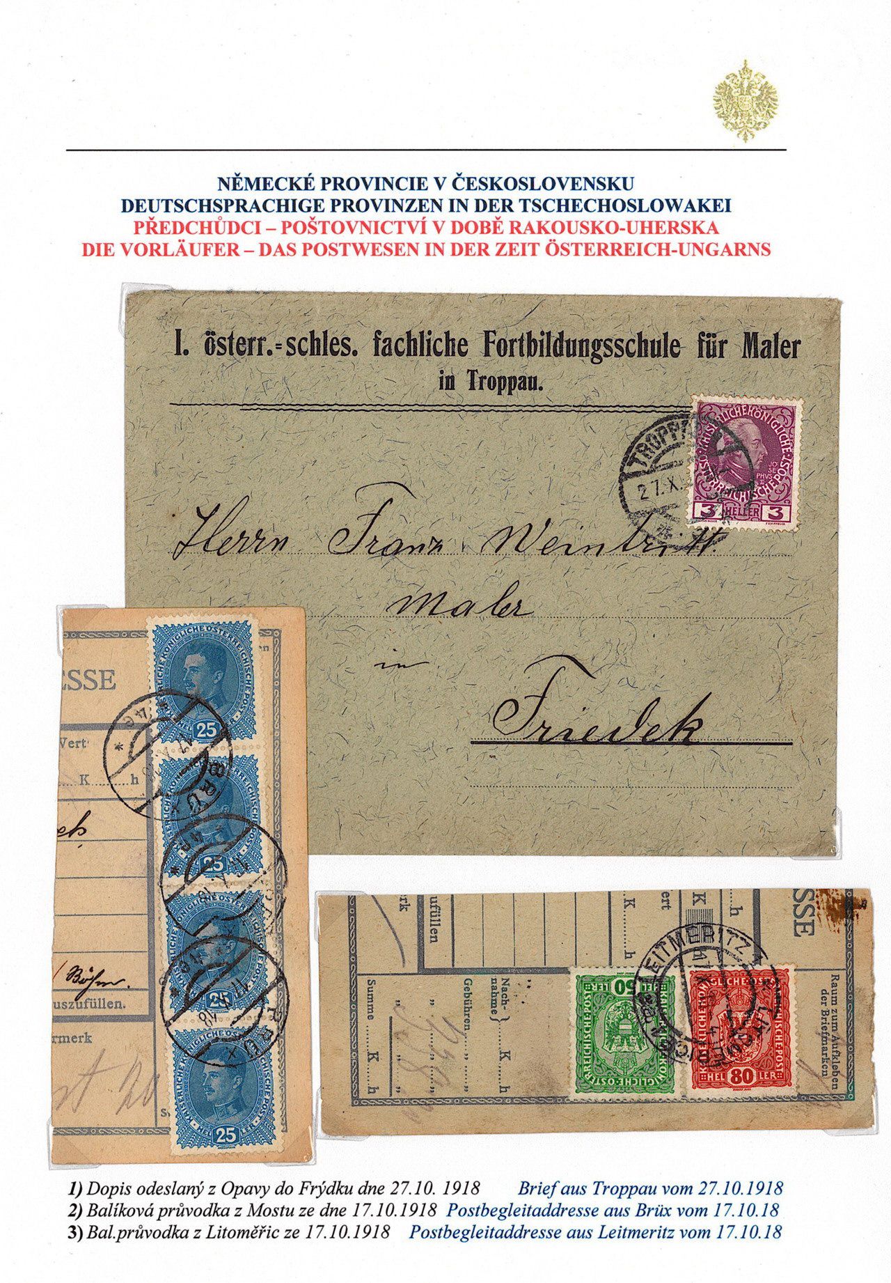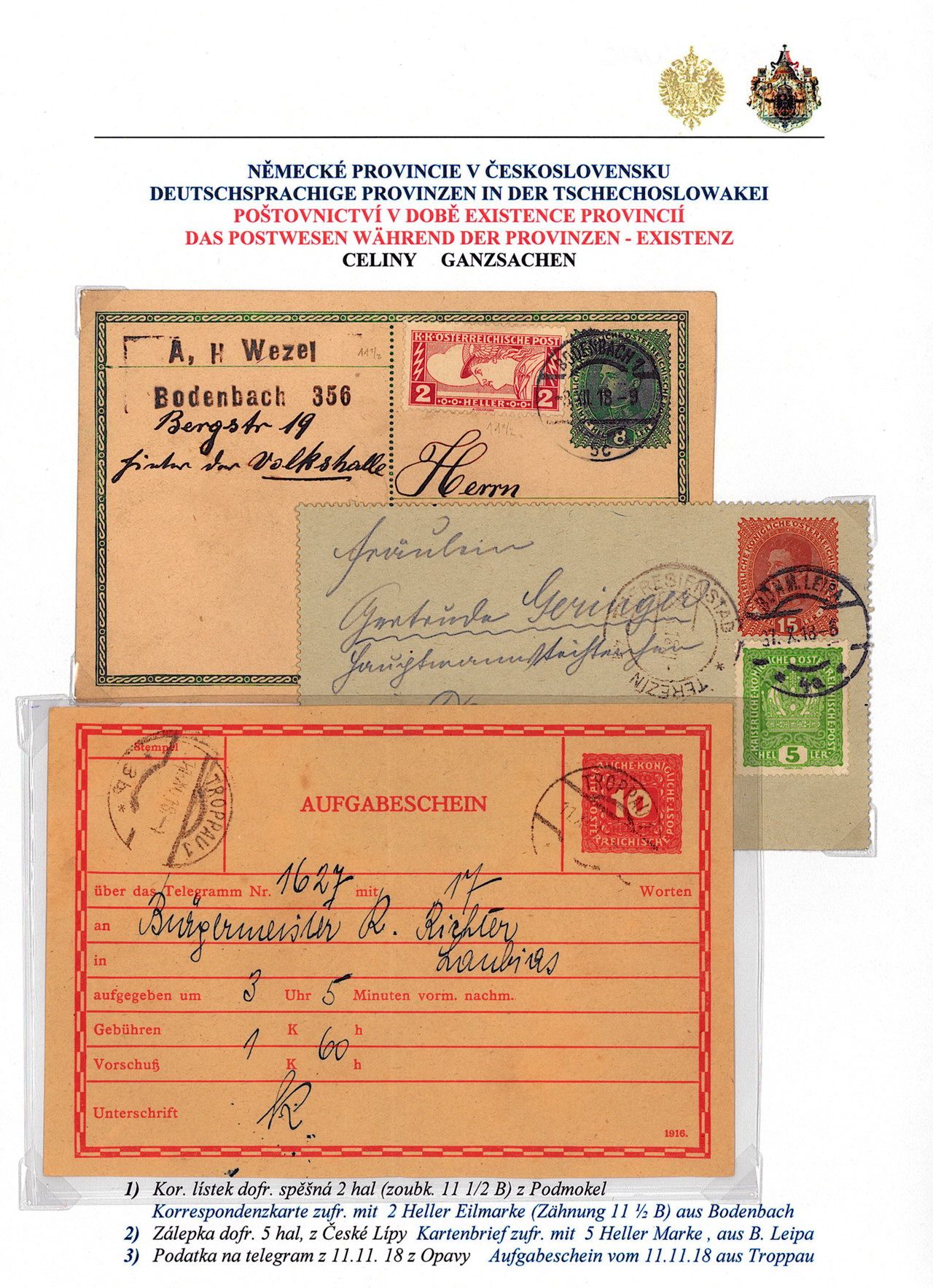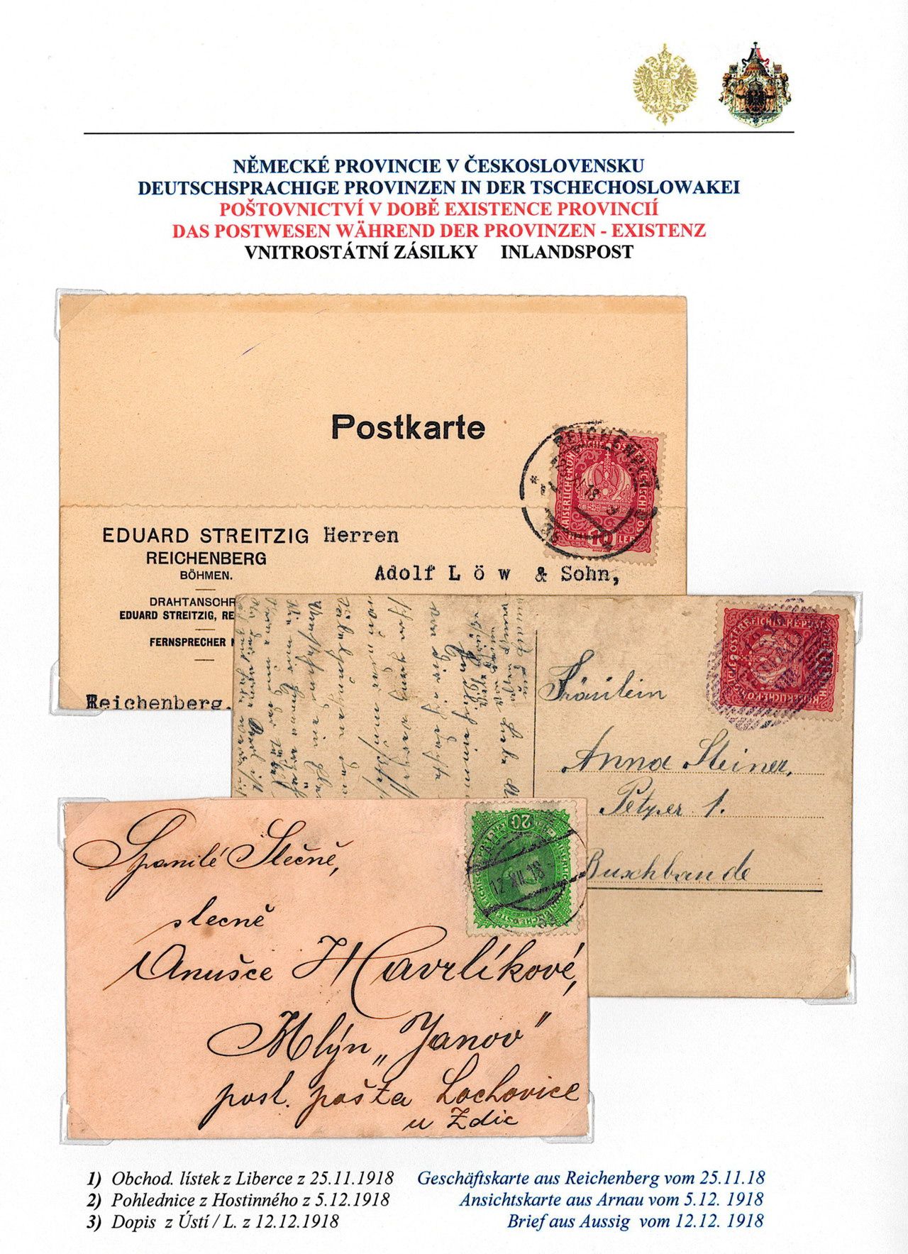 Philatelistisches Exponat: DEUTSCHSPRÄCHIGE PROVINZEN IN BÖHMEN UND MÄHREN