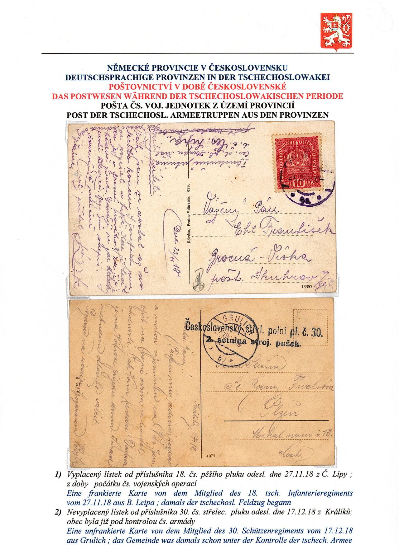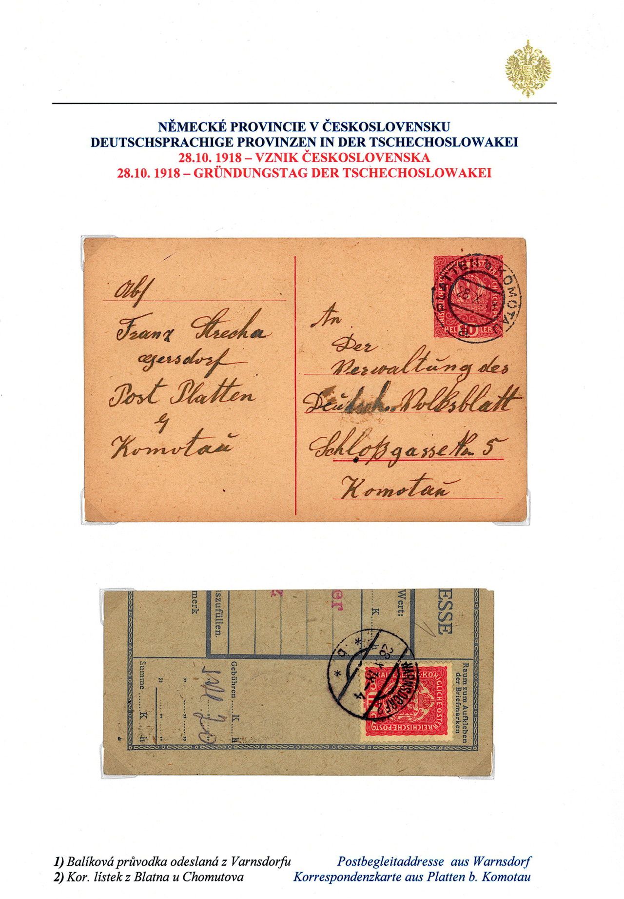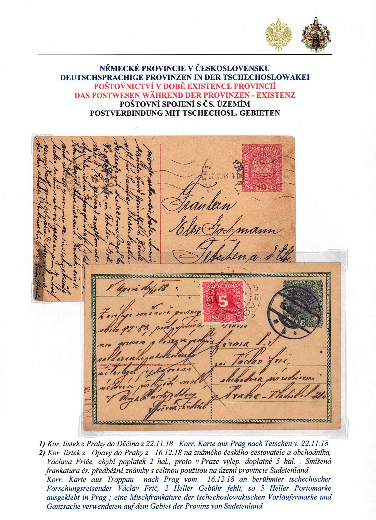 Philatelistisches Exponat: DEUTSCHSPRÄCHIGE PROVINZEN IN BÖHMEN UND MÄHREN